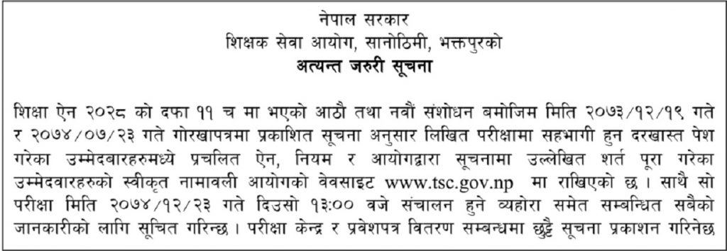 शिक्षा ऐनलाई सार्वभौम संसदले संशाेधन गरेरै छोड्याे । अस्थायी शिक्षकको तोकिएको परीक्षाका अनिश्चयकाे गर्भमा पुग्यो । शिक्षक सेवा आयोगबाट उम्दा शिक्षक छनौट गर्ने प्रश्नका पोका बोकेर केन्द्रमा पुगेका कर्मचारी फिर्ता भए । कसैल अनुमान गरिहाल्न नसक्ने अवस्थामा पुगेको अस्थायी शिक्षकहरुको परीक्षाका लागि शिक्षक सेवा आयोगले सूचना प्रकाशन गरेको छ । अब फेरी यो परीक्षा नसरोस भनेर पशुपतिनाथसँग प्राथना नै गरौँ कि जस्तो लाग्दैछ । हेरौँ सूचना ।